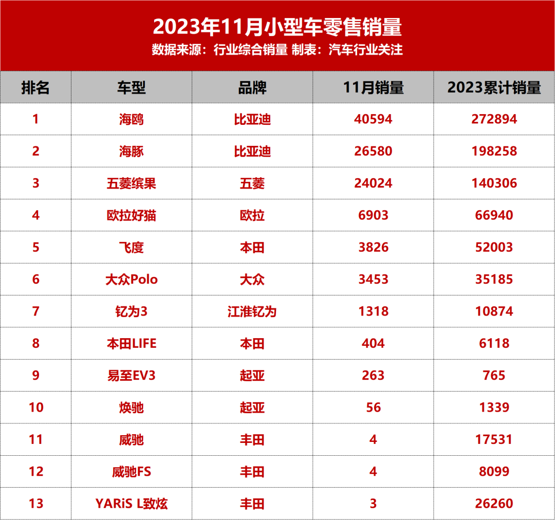 11月各级别车型最新销量榜单包含:微型车、小型车、紧凑型车、中型车、中大型车、小型SUV、紧凑型SUV、中型SUV、中大型SUV、MPV、新能源车。